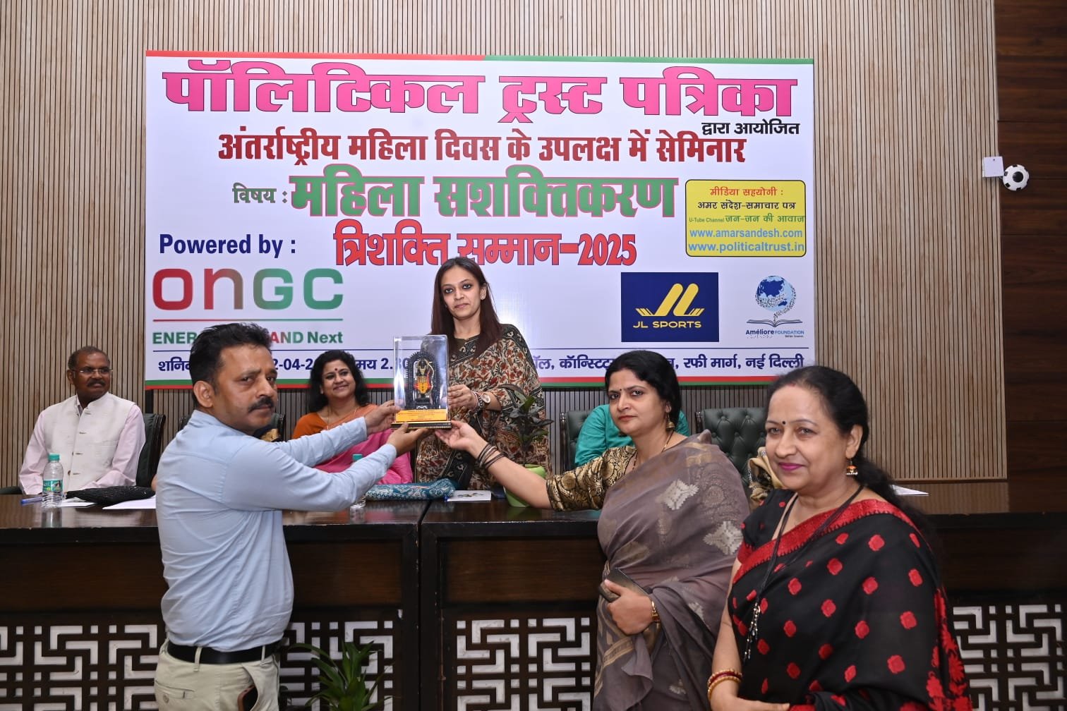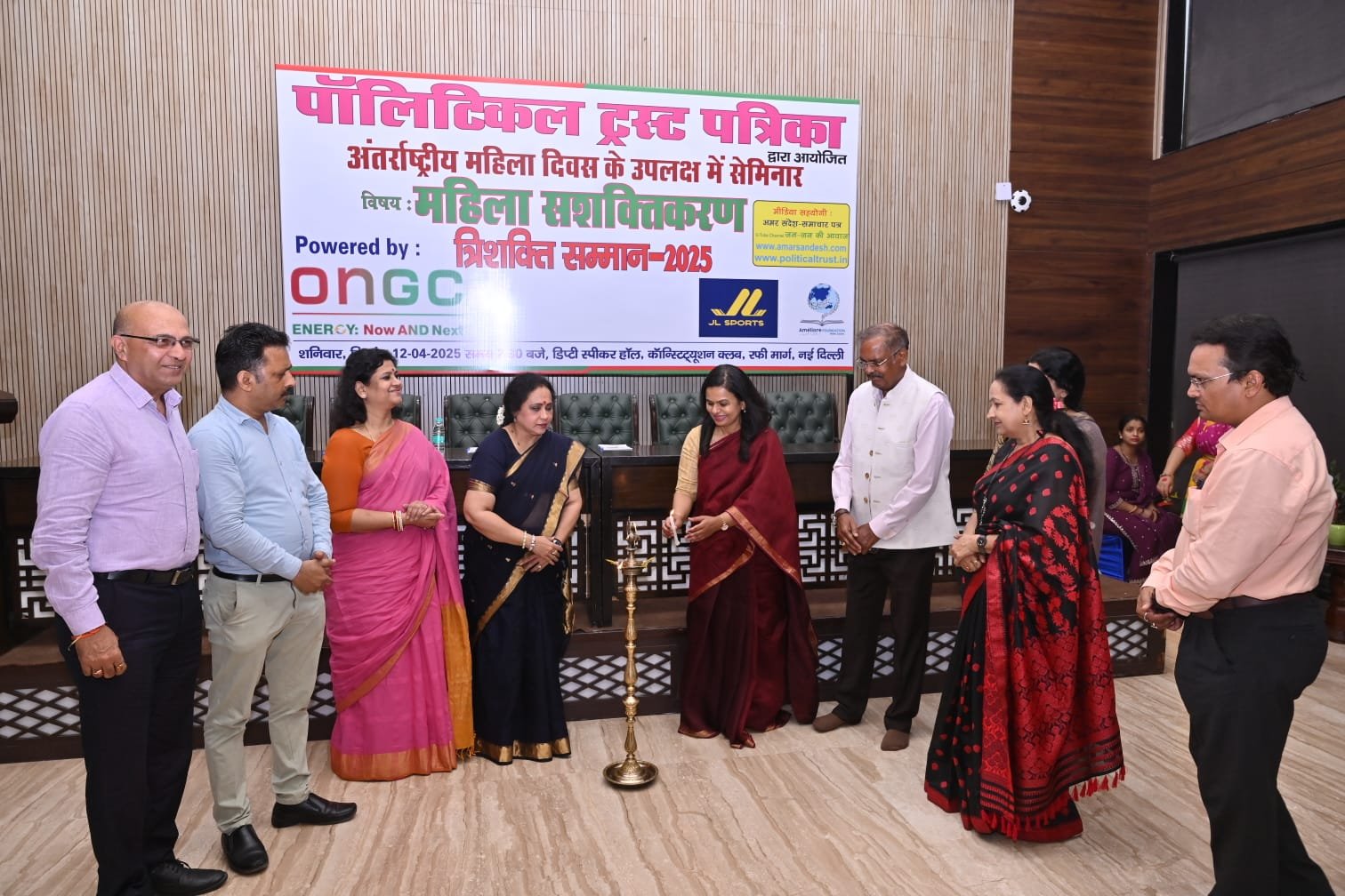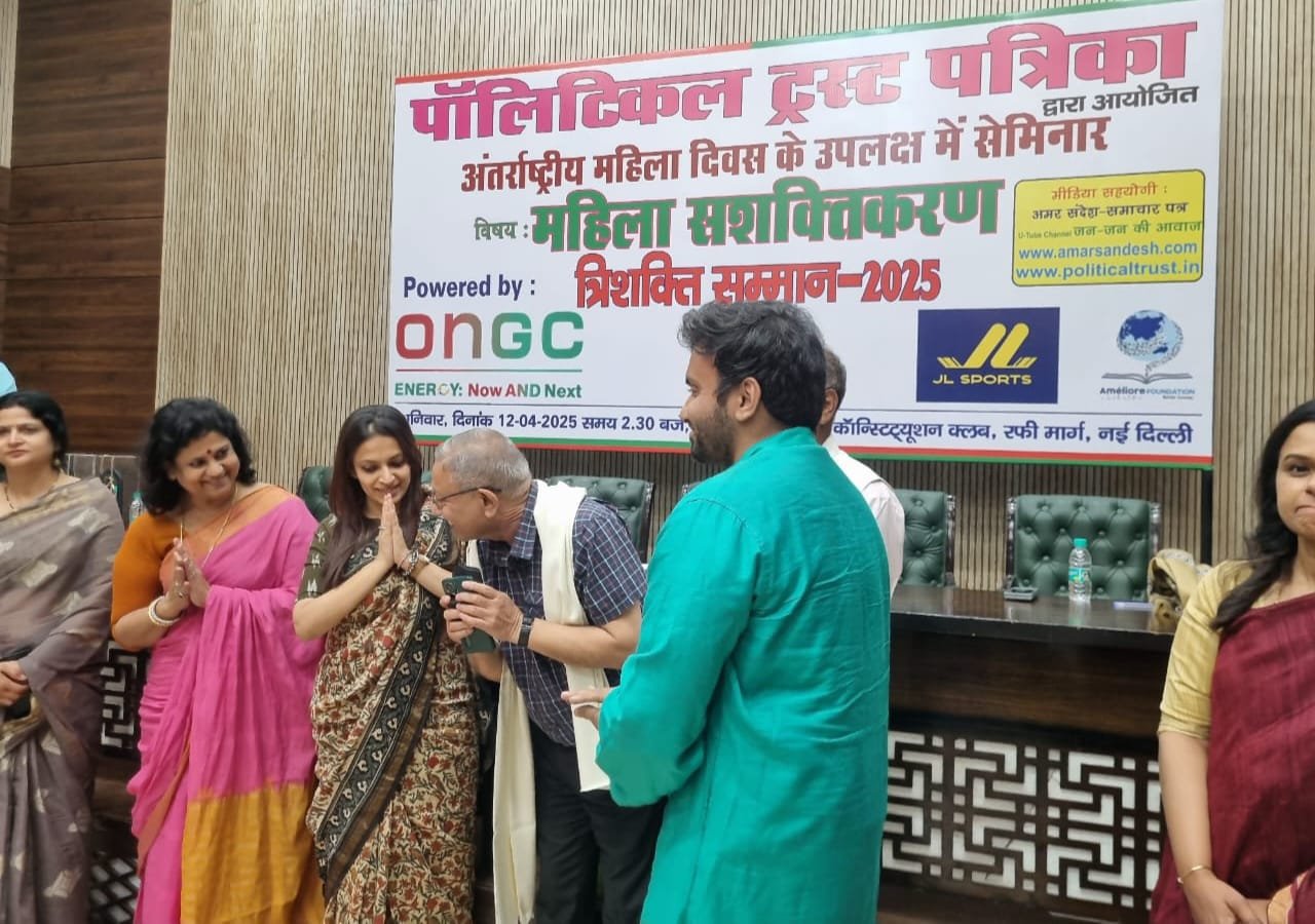 नई दिल्ली। सु-प्रसिद्ध ‘पॉलिटिकल ट्रस्ट पत्रिका’ द्वारा अंतर्राष्ट्रीय महिला दिवस के सुअवसर पर 12 अप्रेल को ‘महिला सशक्तिकरण’ विषय पर भव्य सेमिनार एवं त्रिशक्ति सम्मान-2025 का आयोजन डिप्टी स्पीकर हाल, कंस्टीट्यूशन क्लब में मंचासीन प्रबुद्ध अतिथियों डॉ. स्मिता सिंह उच्च अधिकारी यमुना अथॉरिटी नोएडा, महालक्ष्मी पावनी अधिवक्ता सुप्रीम कोर्ट, विनीता हरिहरन प्रवक्ता भाजपा, पूर्वा मेहरा न्यायाधीश साकेत कोर्ट, वैभव मिश्रा अधिवक्ता सुप्रीम कोर्ट व आर सी चौधरी, अध्यक्ष मल्टी डेकोर इंडिया प्राइवेट लिमिटेड की गरिमामय उपस्थित में आयोजित किया गया।