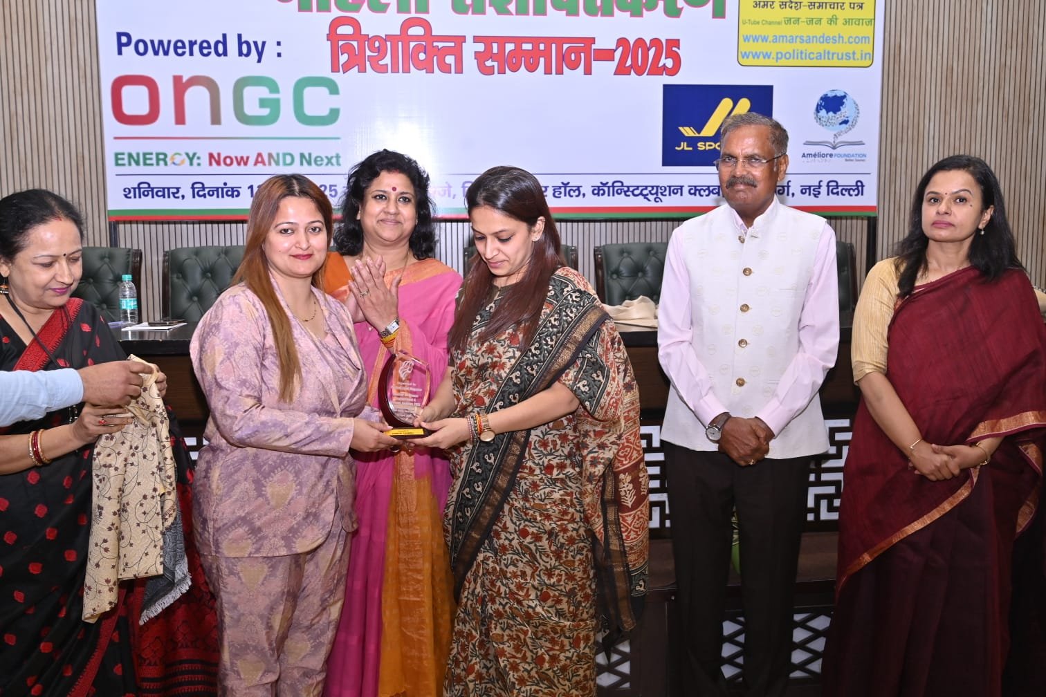 आयोजन के इस अवसर पर दिल्ली में विभिन्न विधाओं के क्षेत्र में अग्रणी होकर कार्य कर रही अनेकों प्रेरक महिलाओं को ‘त्रिशक्ति सम्मान-2025’ से मंचासीन अतिथियों के कर कमलों सम्मानित किया गया।