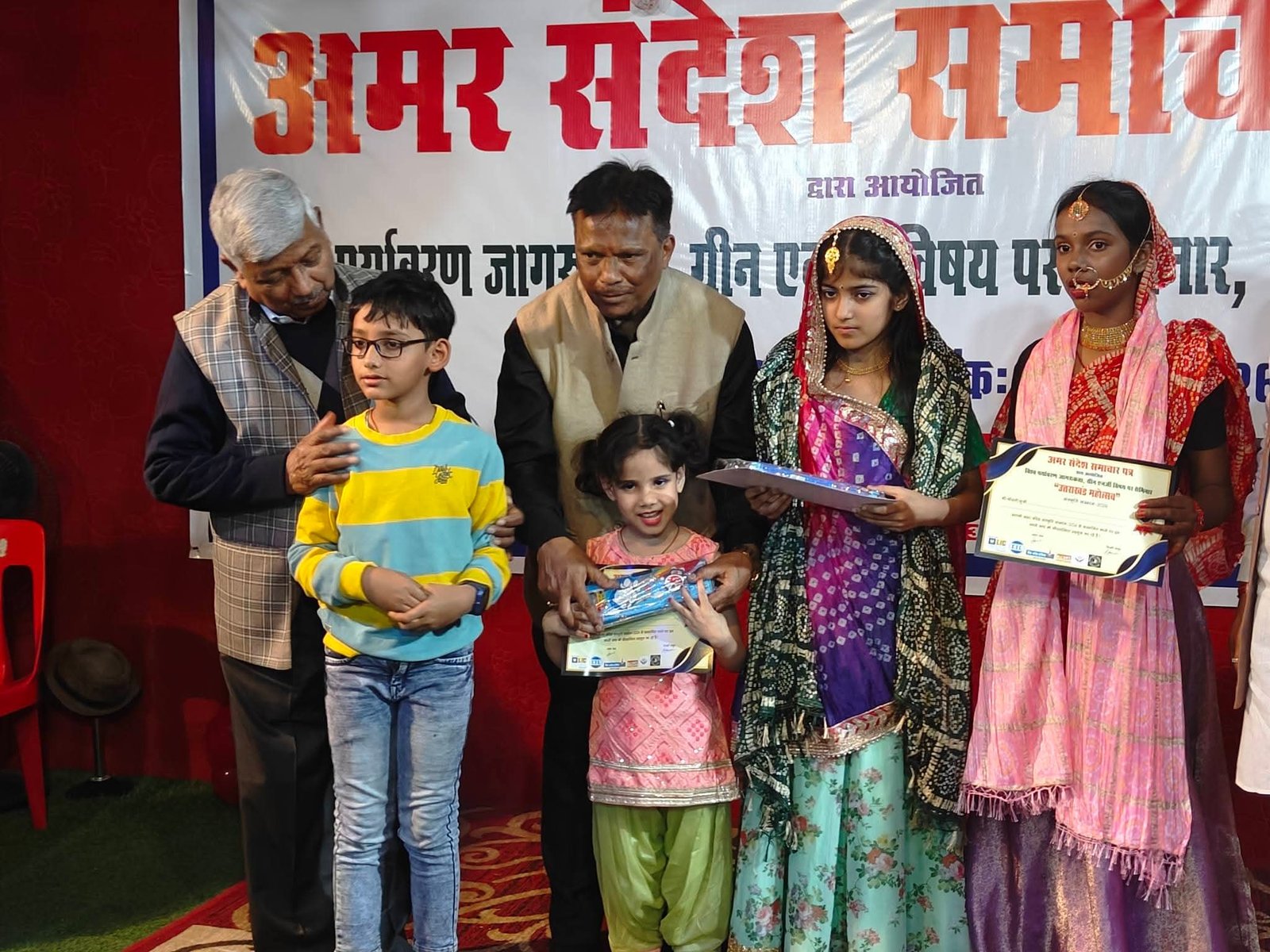 अपने संबोधन में अमर संदेश समाचार पत्र के सलाहकार महेश चंद्रा ने सभी अतिथियों एवं सहयोगियों का धन्यवाद किया। अमर संदेश के संपादक अमरचंद ने भी उपस्थित अतिथियों, कलाकारों, बच्चों, सहयोगी संस्थाओं एवं प्रतिभागियों के प्रति आभार प्रकट किया और कहा कि आप सभी के सहयोग से ही यह आयोजन सफल हो सका। इस साइज उनकी मौके पर कई कलाकारों और बच्चों को संस्कृति सम्मान 2026 से सम्मानित भी किया गया।