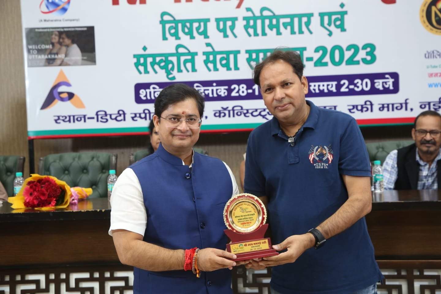 नई दिल्ली। दिल्ली से प्रकाशित ‘अमर संदेश समाचार पत्र’ द्वारा 28 अक्टूबर को ‘मेरा भारत, मेरी संस्कृति’ विषय पर आयोजित सेमिनार व ‘संस्कृति सेवा सम्मान 2023’ का भव्य आयोजन डिप्टी स्पीकर हाल, कन्स्टिट्युशन क्लब मे मंचासीन अतिथियो समाजसेवी महेश चंद्रा, स्मिता सिंह, हरिपाल रावत, लोकगायक विरेन्द्र सिंह नेगी ‘राही’, व्यवसायी अरुण कुमार, अधिवक्ता सर्वोच्च न्यायालय संजय शर्मा दरमोड़ा, योग गुरु व सेवानिर्वत उच्च अधिकारी भारत सरकार, डाॅ सत्येंद्र सिंह प्रयासी की गरिमामयी उपस्थित मे आयोजित किया गया।