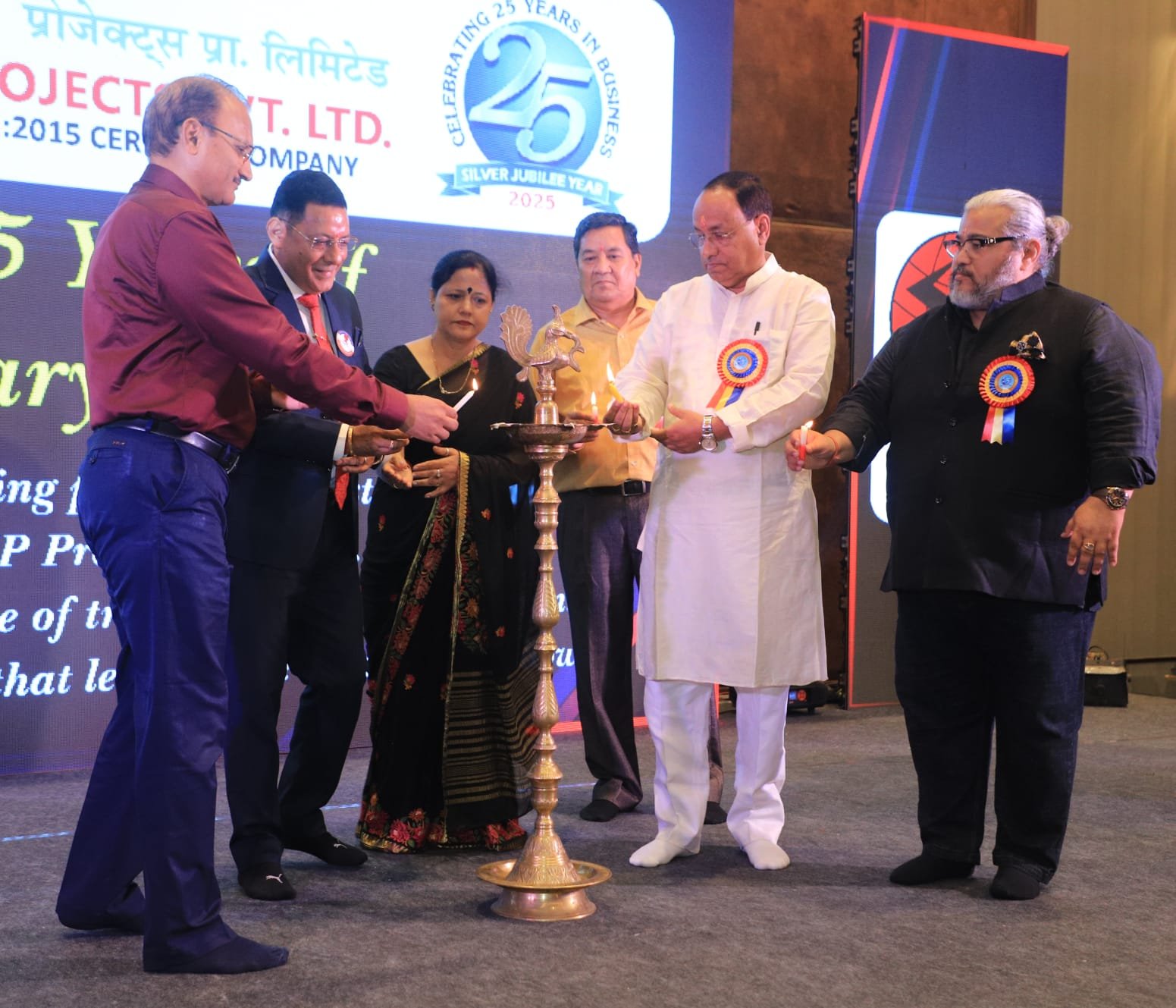 कंपनी स्थापना की 25वीं वर्षगांठ पर आयोजित सिल्वर जुबली का श्रीगणेश, गणेश वंदना व मुख्य व विशिष्ट अतिथियों के साथ-साथ एस के पी प्रोजेक्ट चेयरमैन व सीएमडी सुरेश चंद्र पांडे और कामिनी पांडे के कर कमलों दीप प्रज्वलित कर तथा भारी भरकम केक काट कर किया गया।
