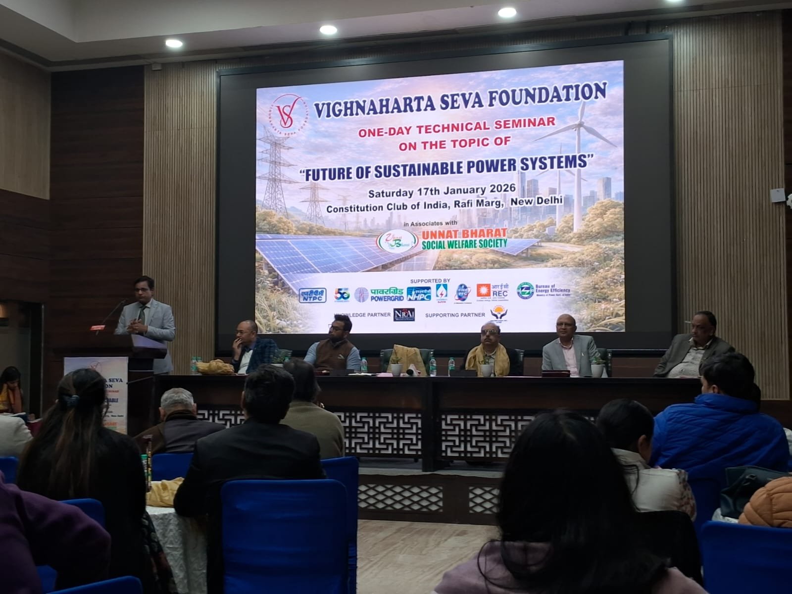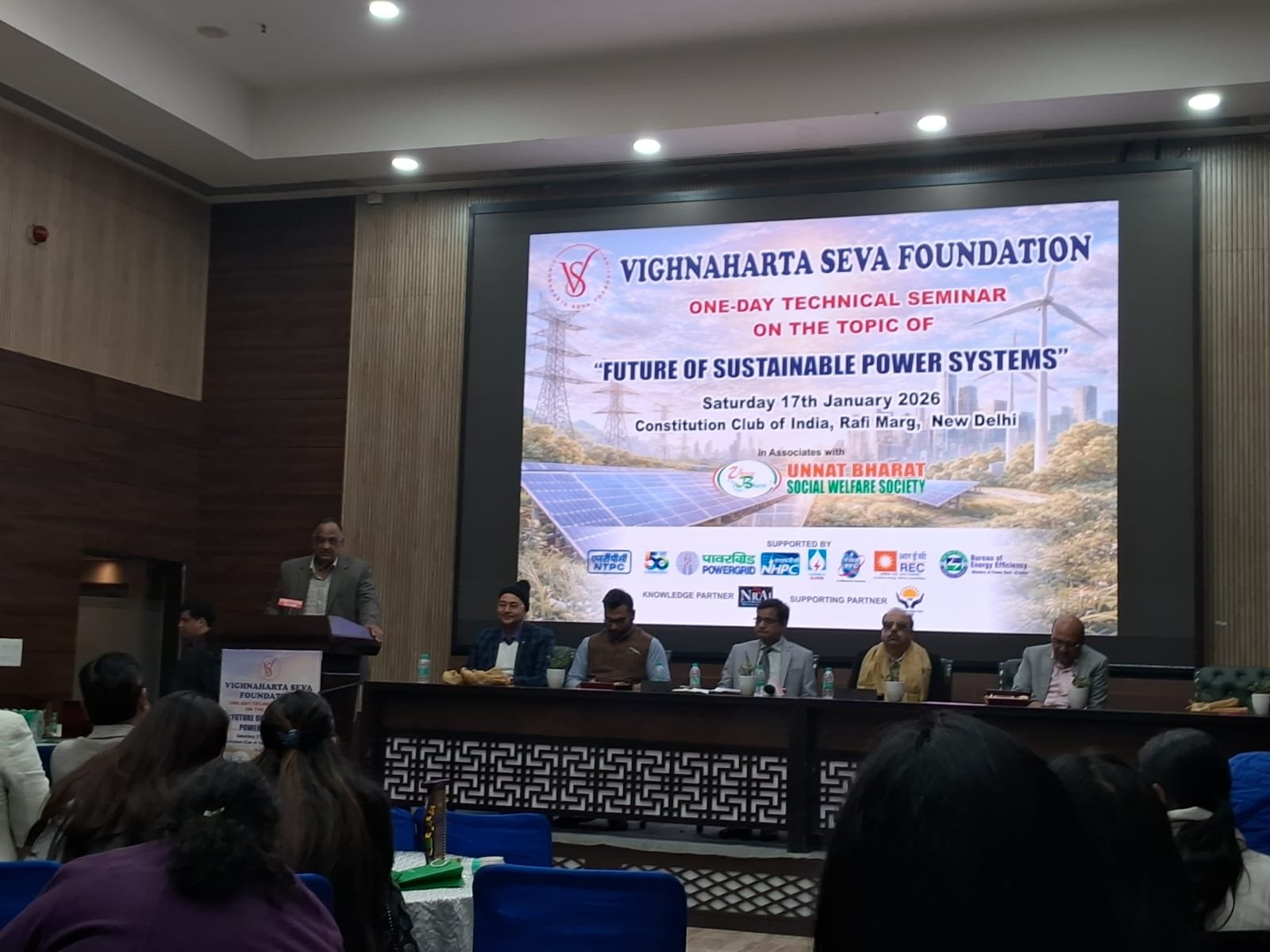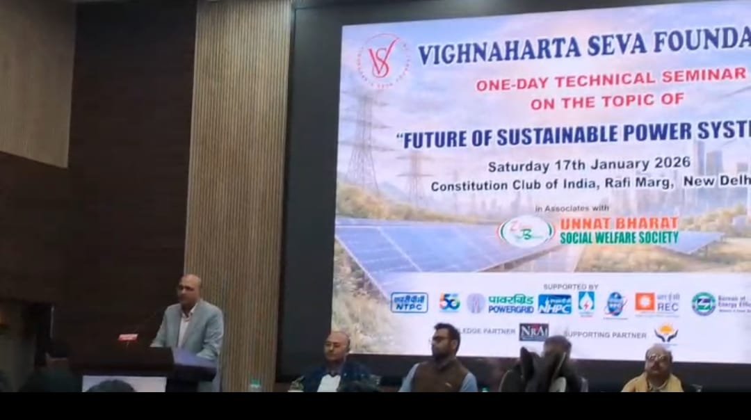 Amar sandesh नई दिल्ली। ‘विकसित भारत’ के लक्ष्य को साकार करने की दिशा में सतत और स्वच्छ ऊर्जा को केंद्रीय आधार मानते हुए विघ्नहर्ता सेवा फाउंडेशन और उन्नत भारत सोशल वेलफेयर सोसाइटी के संयुक्त तत्वावधान में आज नई दिल्ली के कॉन्स्टिट्यूशन क्लब ऑफ इंडिया में एक दिवसीय तकनीकी संगोष्ठी का सफल आयोजन किया गया। संगोष्ठी का मुख्य विषय “भारत में सतत ऊर्जा प्रणालियों का भविष्य” (Future of Sustainable Power Systems in India) रहा।