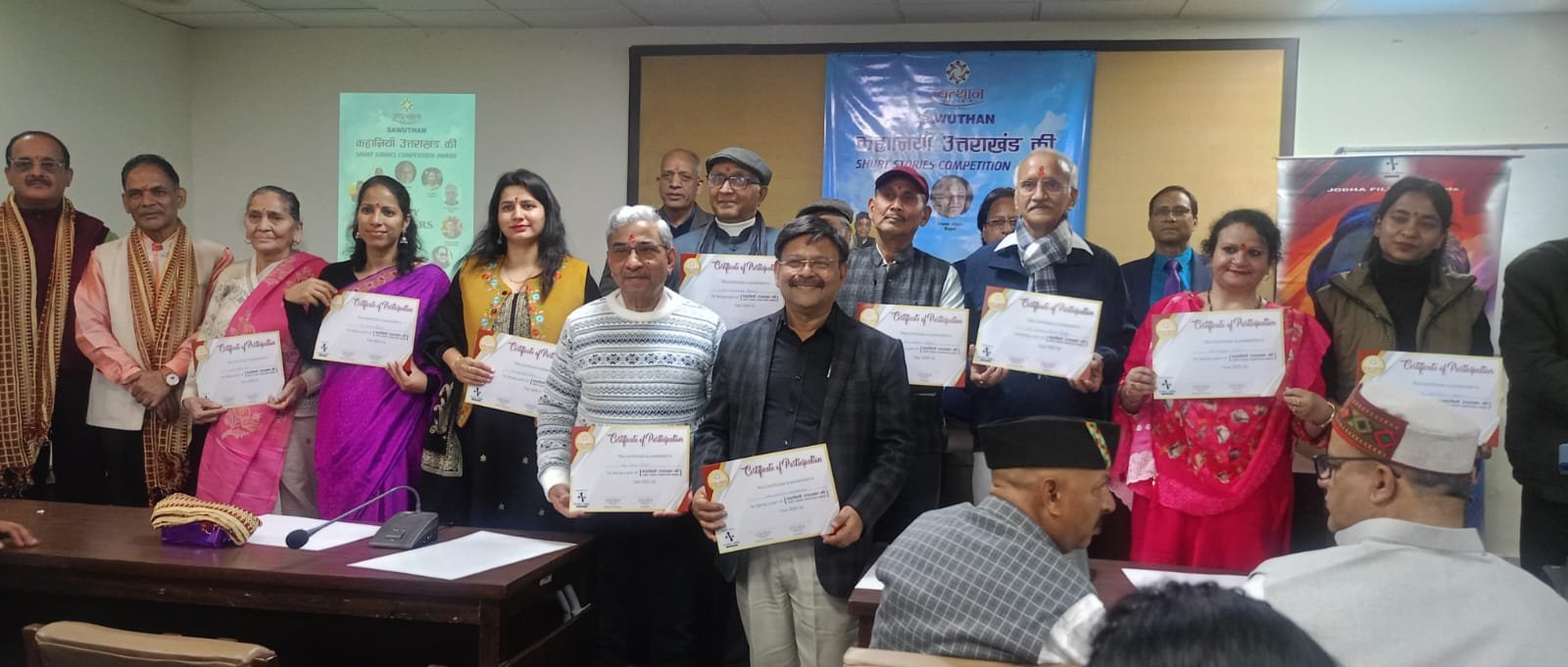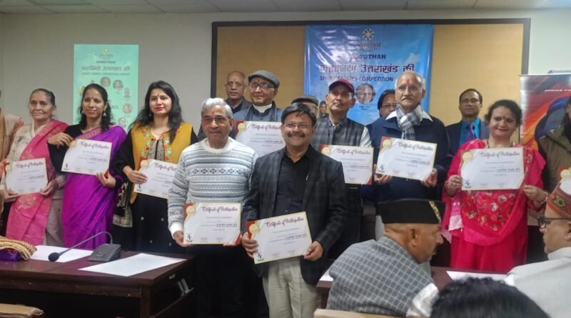 नई दिल्ली। जन कल्याण व उत्थान के क्षेत्र में निरंतर अग्रसर रही प्रतिष्ठित संस्था “स्वत्थान” द्वारा जोधा फिल्म्स के सहयोग से उत्तराखंड की पृष्ठभूमि पर आलेखित लघु कहानियों पर जूरी सदस्यों द्वारा चयनित की गई आठ रचनाकारों की लघु कहानियों को 14 फरवरी की सायं चाणक्य पुरी स्थित यूथ हॉस्टल्स एंड एसोसिएशन ऑफ इंडिया सभागार में भव्य सम्मान समारोह का आयोजन कर सम्मानित किया गया।