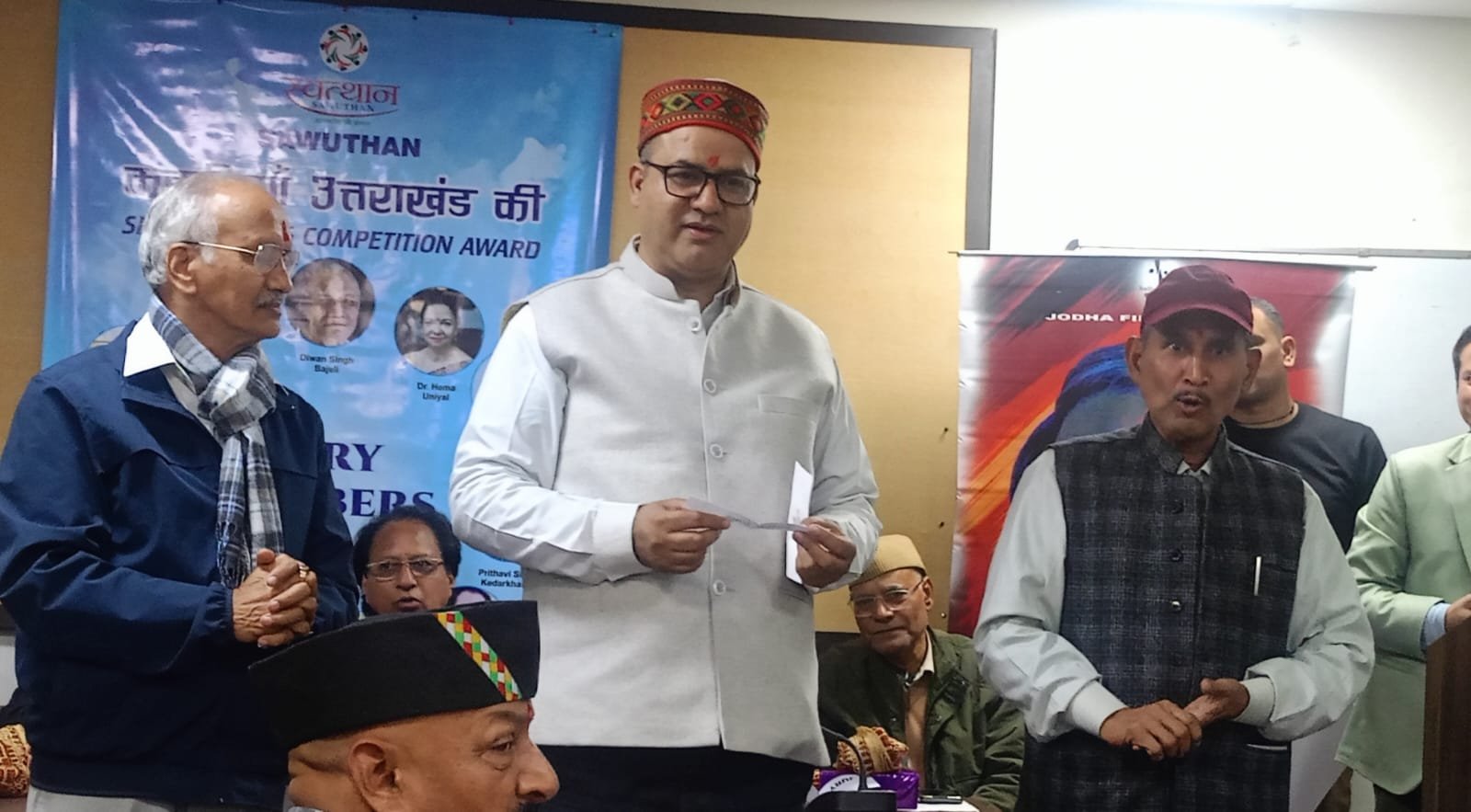 “स्वत्थान” द्वारा उत्तराखंड की पृष्ठभूमि पर आलेखित लघु कहानियों पर आयोजित ‘कहानियां उत्तराखंड की’ सम्मान समारोह के इस अवसर पर आयोजक संस्था पदाधिकारियों गणेश रौतेला (उपाध्यक्ष) व डॉ. शरद चंद्र जोशी द्वारा सभागार में बड़ी संख्या में उपस्थित प्रबुद्ध जनों का स्वागत अभिनन्दन कर सभी मंचासीन जूरी सदस्यों का सारगर्भित परिचय देकर तथा आयोजक संस्था से जुड़े प्रताप सिंह बिष्ट, चरण जीत सिंह, नवीन गोयल, अरविंद सिंह इत्यादि इत्यादि संस्था कर्मठ सदस्यों का परिचय करवा कर तथा प्रबुद्ध जूरी सदस्यों को अंगवस्त्र ओढ़ा कर व स्मृति चिन्ह प्रदान कर सम्मानित किया गया।