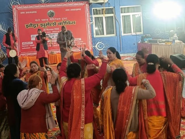 विशेष आकर्षण विद्या रावत और भावना उप्रेती की झोड़ा नृत्य टीम रही, जिन्होंने पारंपरिक वेशभूषा में उत्तराखंड की सामूहिक लोक नृत्य परंपरा का ऐसा प्रदर्शन किया कि पूरा हॉल तालियों की गड़गड़ाहट से गूंज उठा।