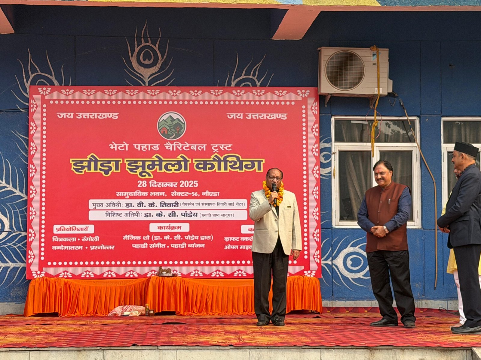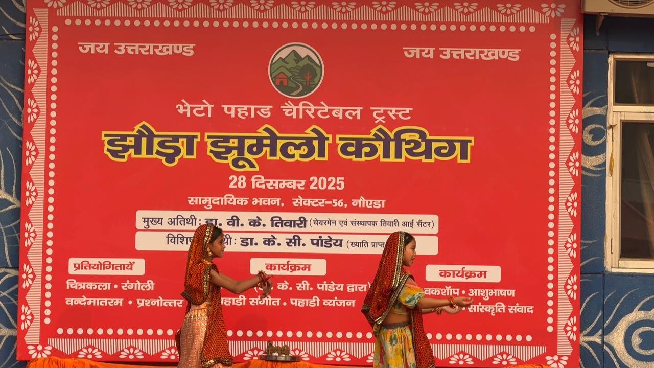 Amar sandesh दिल्ली/नॉएडा (विशेष संवाददाता): राष्ट्रीय राजधानी क्षेत्र (NCR) में रह रहे प्रवासी उत्तराखंडियों के लिए रविवार का दिन अपनी मिट्टी की खुशबू और लोक परंपराओं से रूबरू होने का रहा। भेटो पहाड़ चैरिटेबल ट्रस्ट द्वारा सेक्टर-56 स्थित सामुदायिक भवन में आयोजित ‘झोड़ा झूमेलो कौथिग’ ने न केवल पहाड़ की सांस्कृतिक विरासत को जीवंत किया, बल्कि मूल निवास, रिवर्स पलायन और सशक्त भू-कानून इत्यादि जैसे गंभीर मुद्दों पर भी मंथन किया।