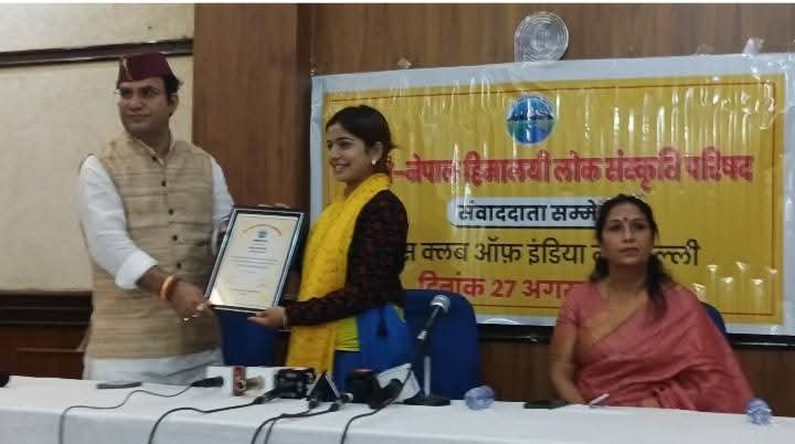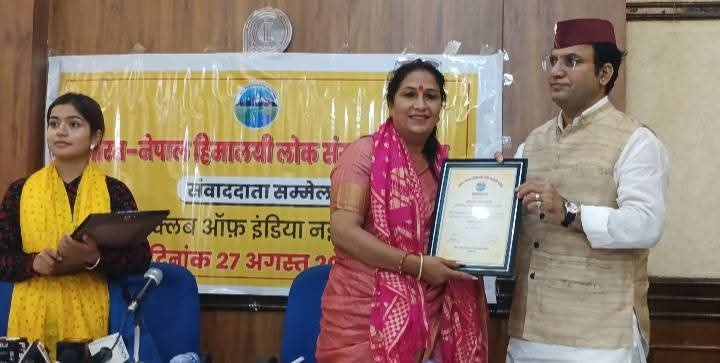 सम्मेलन के दौरान नेपाल की लोकप्रिय गायिका इब्सल संजयाल और उत्तराखंड की जिला पंचायत सदस्य शांति उप्रेती को “विशेष हिमालय गौरव सम्मान” से सम्मानित किया गया।