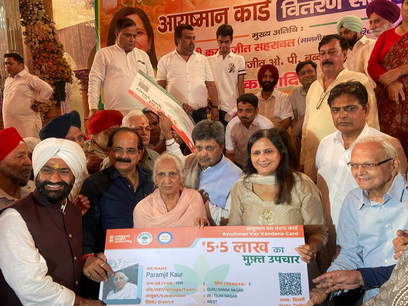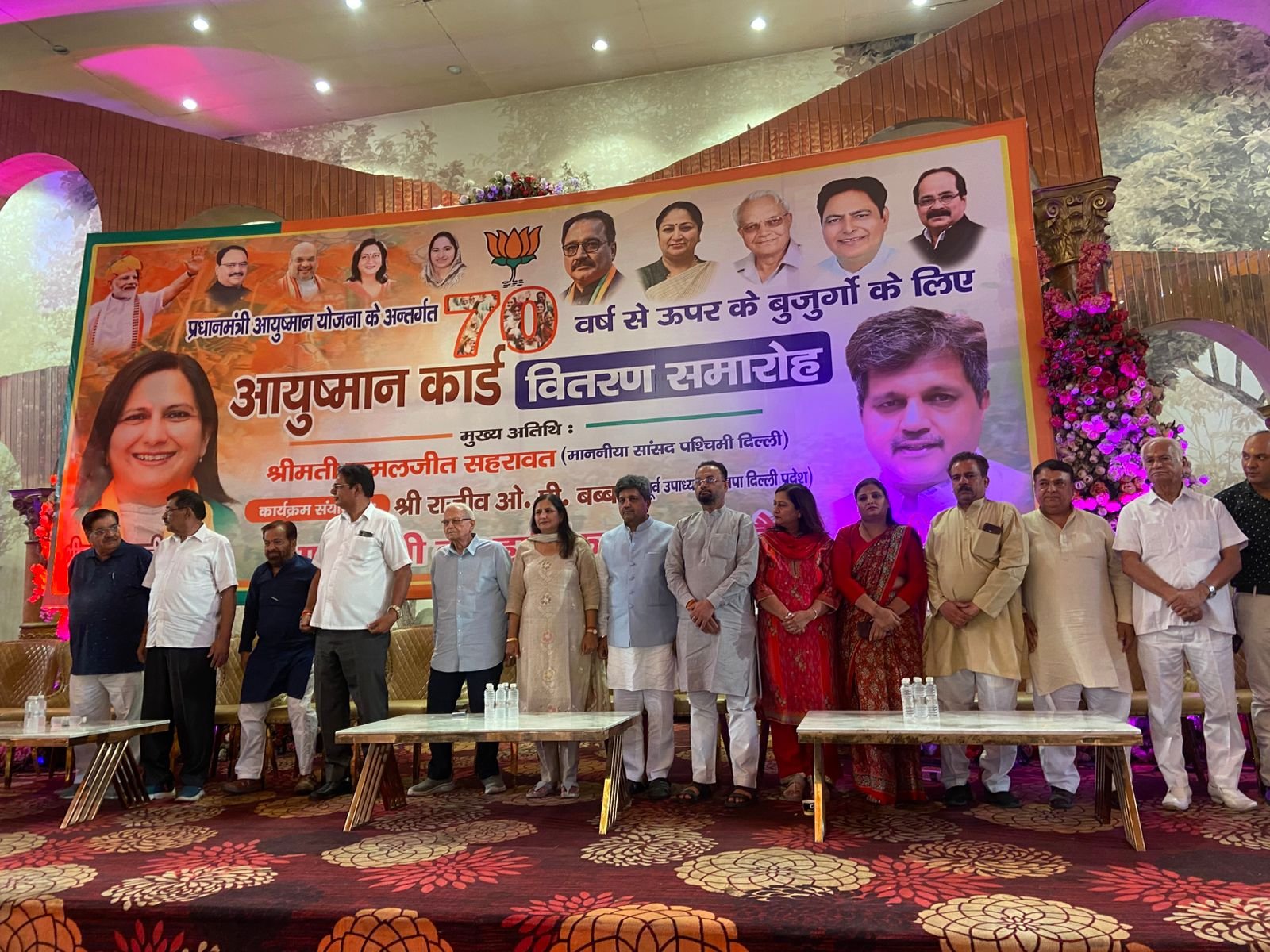 Amar sandesh नई दिल्ली,।दिल्ली भाजपा की महामंत्री एवं सांसद श्रीमती कमलजीत सहरावत की उपस्थिति में विकासपुरी के गोल्डन एप्पल बैंक्विट हॉल में वरिष्ठ नागरिकों को आयुष्मान कार्ड वितरण कार्यक्रम का आयोजन किया गया जिसमें लगभग पांच हजार से अधिक वरिष्ठ नागरिकों को आयुष्मान कार्ड वितरण किया गया। पूर्व विधायक ओ.पी. बब्बर ने कार्यक्रम की अध्यक्षता की।