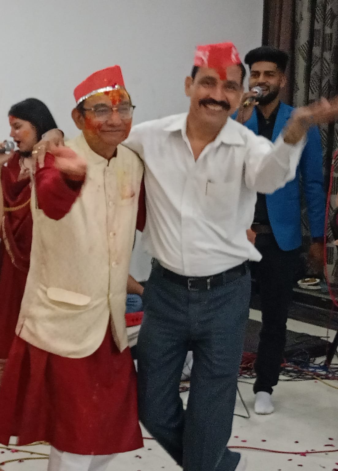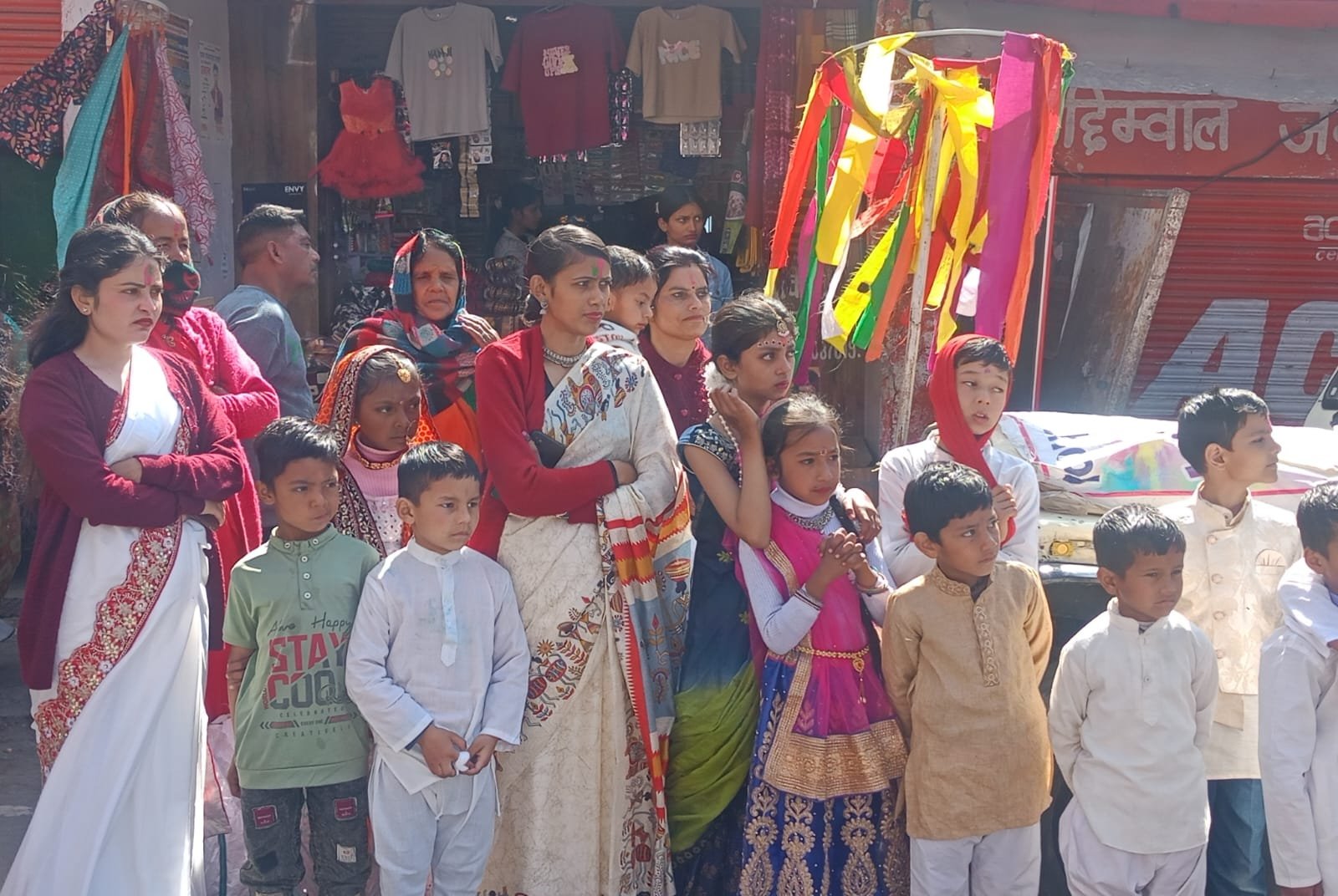 होली गायन में पुरुष होल्यार, चटख सफेद रंग का कुर्ता व पायजामा तथा महिलाऐ परंपरागत साड़ियां धारण कर होली गायन में प्रतिभाग करती हैं। छलडी से सप्ताह पूर्व कपड़ो में रंग छिड़का जाता है। होली आयोजन में अबीर, गुलाल लगाने का प्रचलन है।