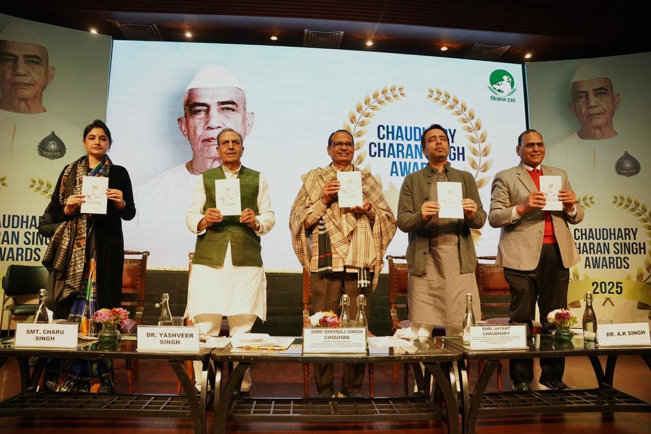 Amar sandesh नई दिल्ली।*केंद्रीय कृषि एवं किसान कल्याण और ग्रामीण विकास मंत्री श्री शिवराज सिंह चौहान ने आज नई दिल्ली में किसान ट्रस्ट द्वारा आयोजित चौधरी चरण सिंह किसान सम्मान समारोह में सहभागिता की। इस अवसर पर केंद्रीय कृषि मंत्री ने पुस्तक का विमोचन किया और प्रगतिशील किसान और कृषि क्षेत्र में उल्लेखनीय योगदान के लिए संस्थानों और व्यक्तियों को सम्मानित किया। समारोह में केंद्रीय शिक्षा और कौशल विकास एवं उद्यमिता राज्य मंत्री (स्वतंत्र प्रभार) श्री जयंत चौधरी भी शामिल हुए।